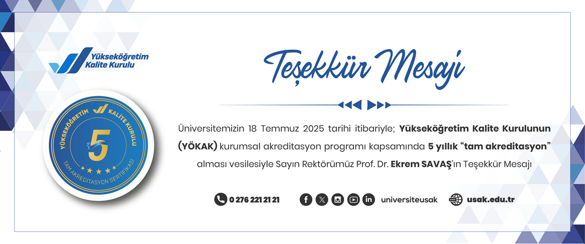 YÖK Başkanlığının teklifi ve Sayın Cumhurbaşkanımız Recep Tayyip Erdoğan’ın takdirleriyle 11 Aralık 2025 tarihinde üniversitemiz rektörlüğüne atanan Prof. Dr. Ahmet Demir, Uşak Üniversitesi Rektörlük görevini yürüten Prof. Dr. Ekrem Savaş’tan devraldı.