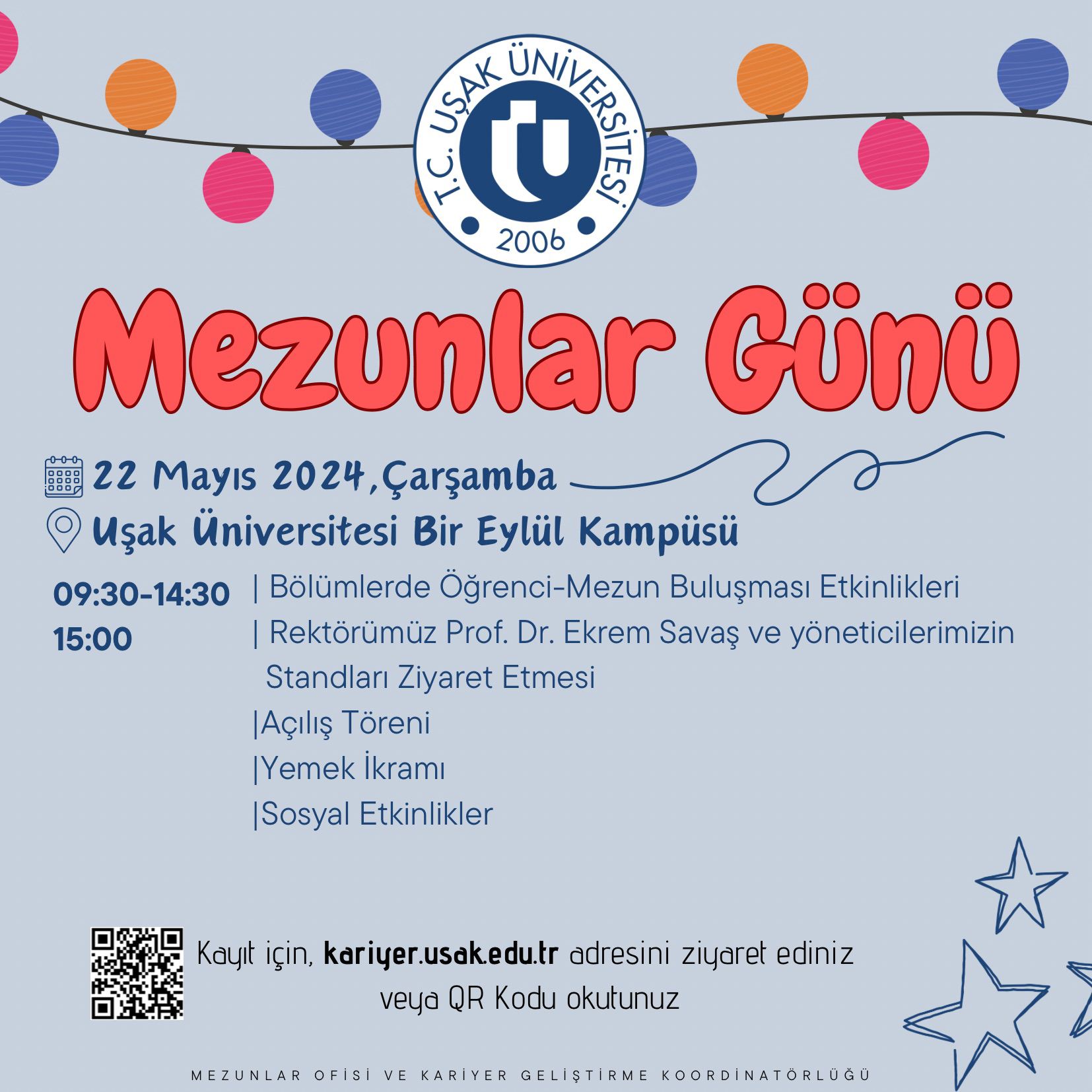 22 Mayıs 2024 tarihinde gerçekleşecek olan Mezunlar Günü etkinliğimize katılmak için lütfen kayıt olunuz.