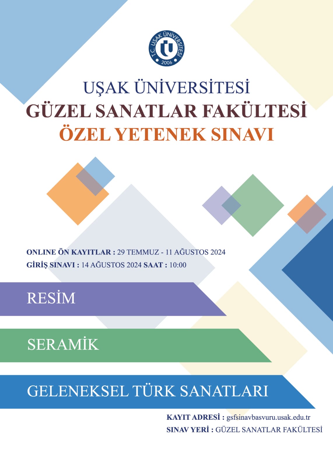 Sınav Yeri: Uşak Üniversitesi Güzel Sanatlar Fakültesi