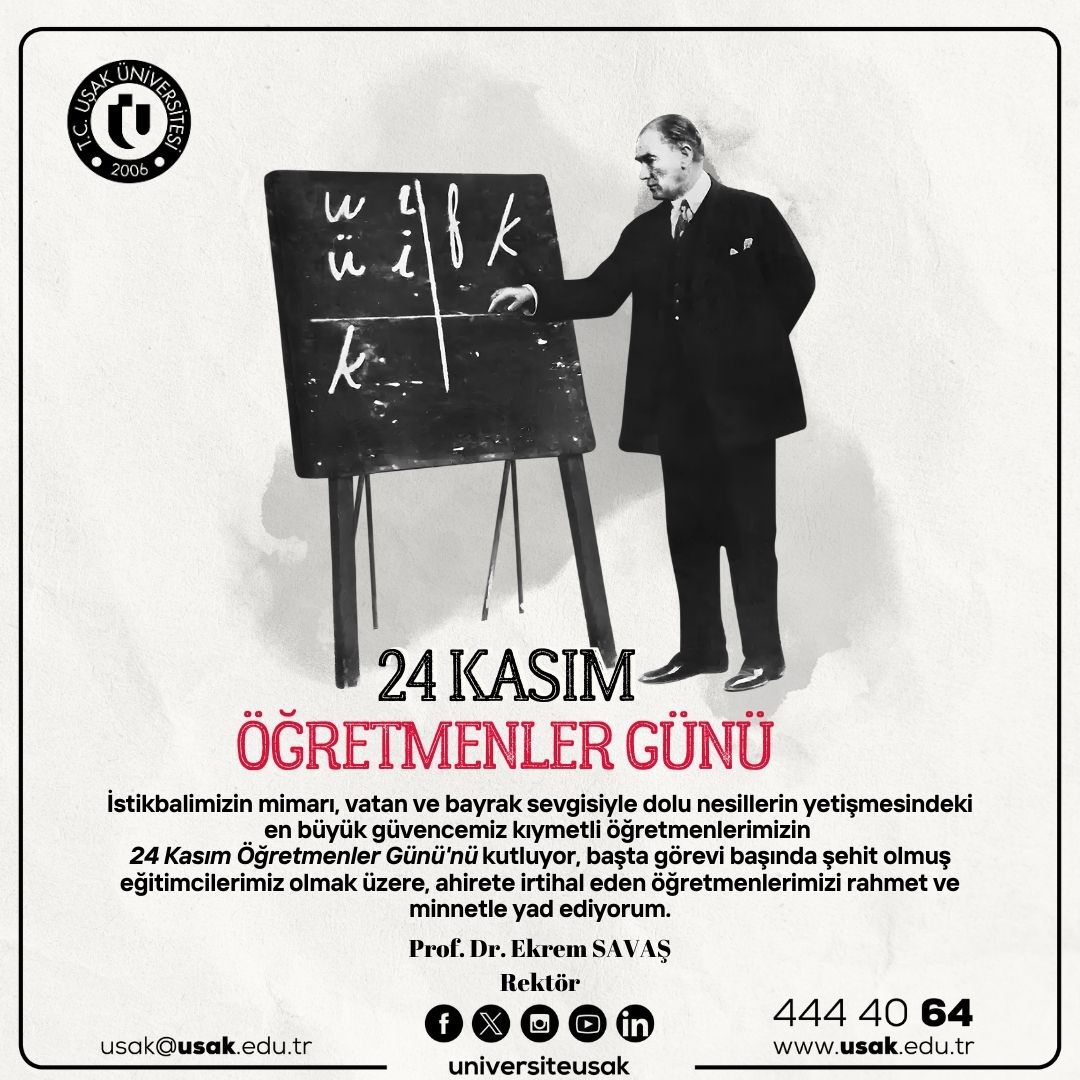 Ana Sayfa / Duyurular / Rektörümüz Prof. Dr. Ekrem Savaş'ın 24 Kasım Öğretmenler Günü Mesajı