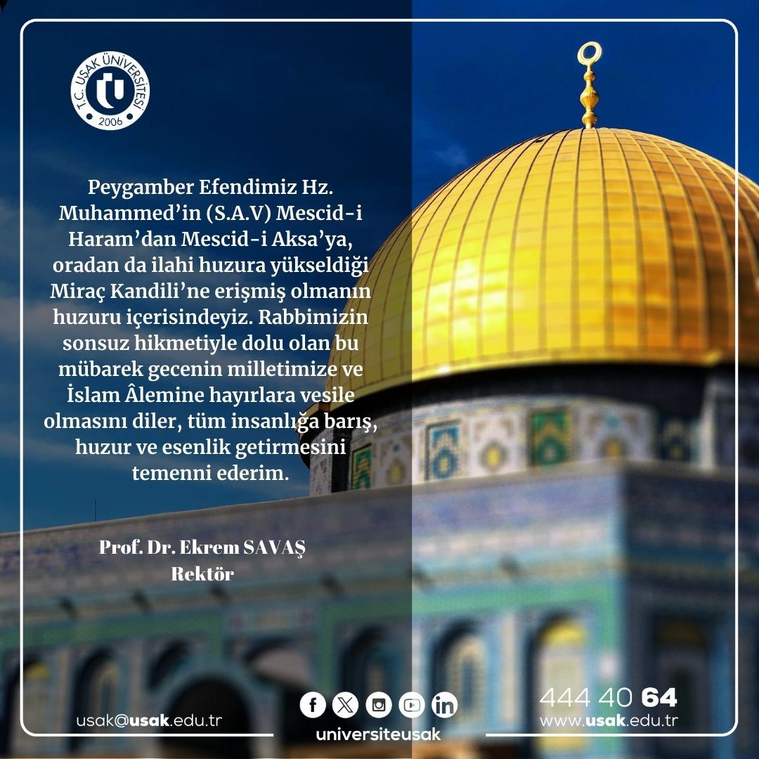 Rektörümüz Prof. Dr. Ekrem Savaş'ın Miraç Kandili Mesajı