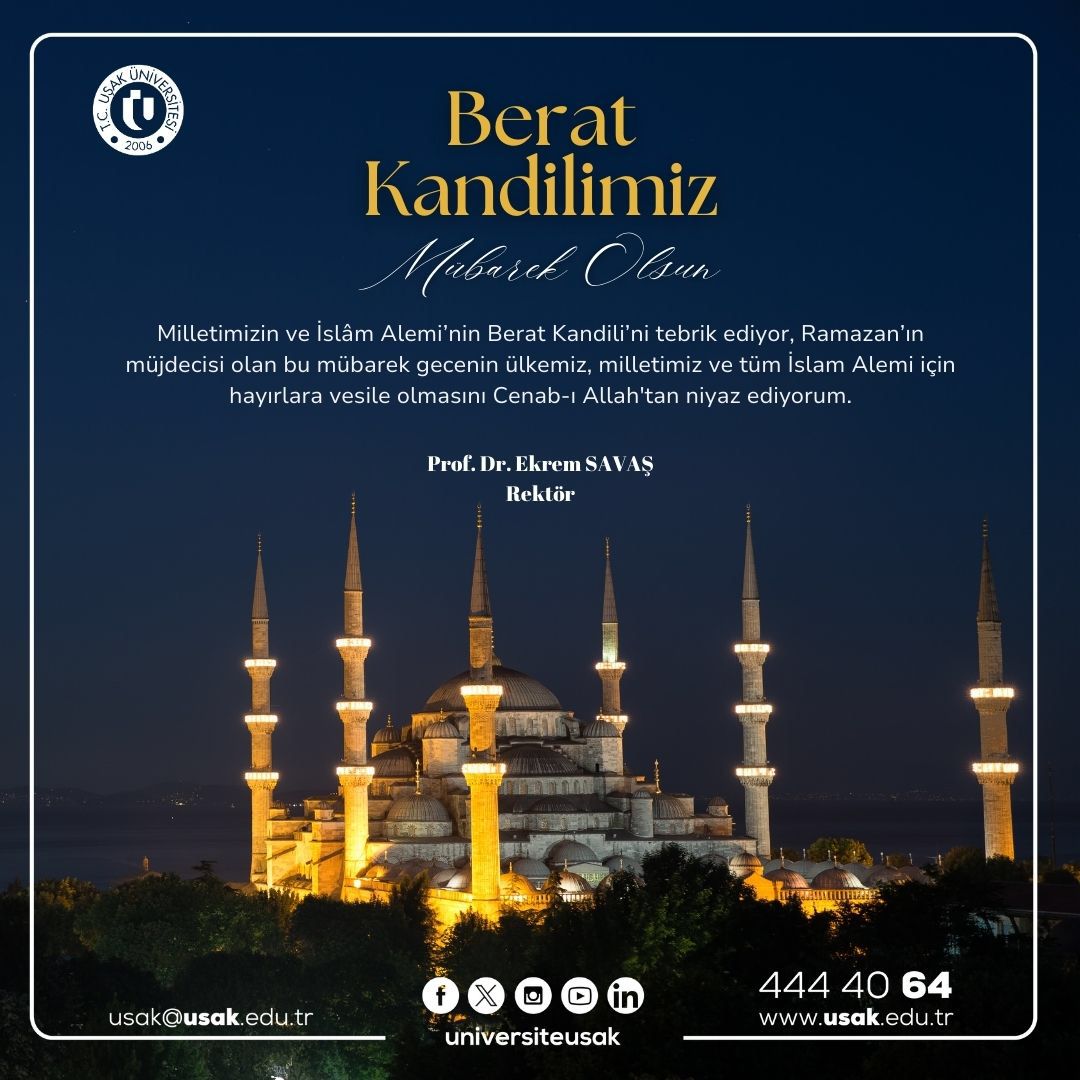 Ana Sayfa / Duyurular / Rektörümüz Prof. Dr. Ekrem SAVAŞ’ın Berat Kandili Mesajı