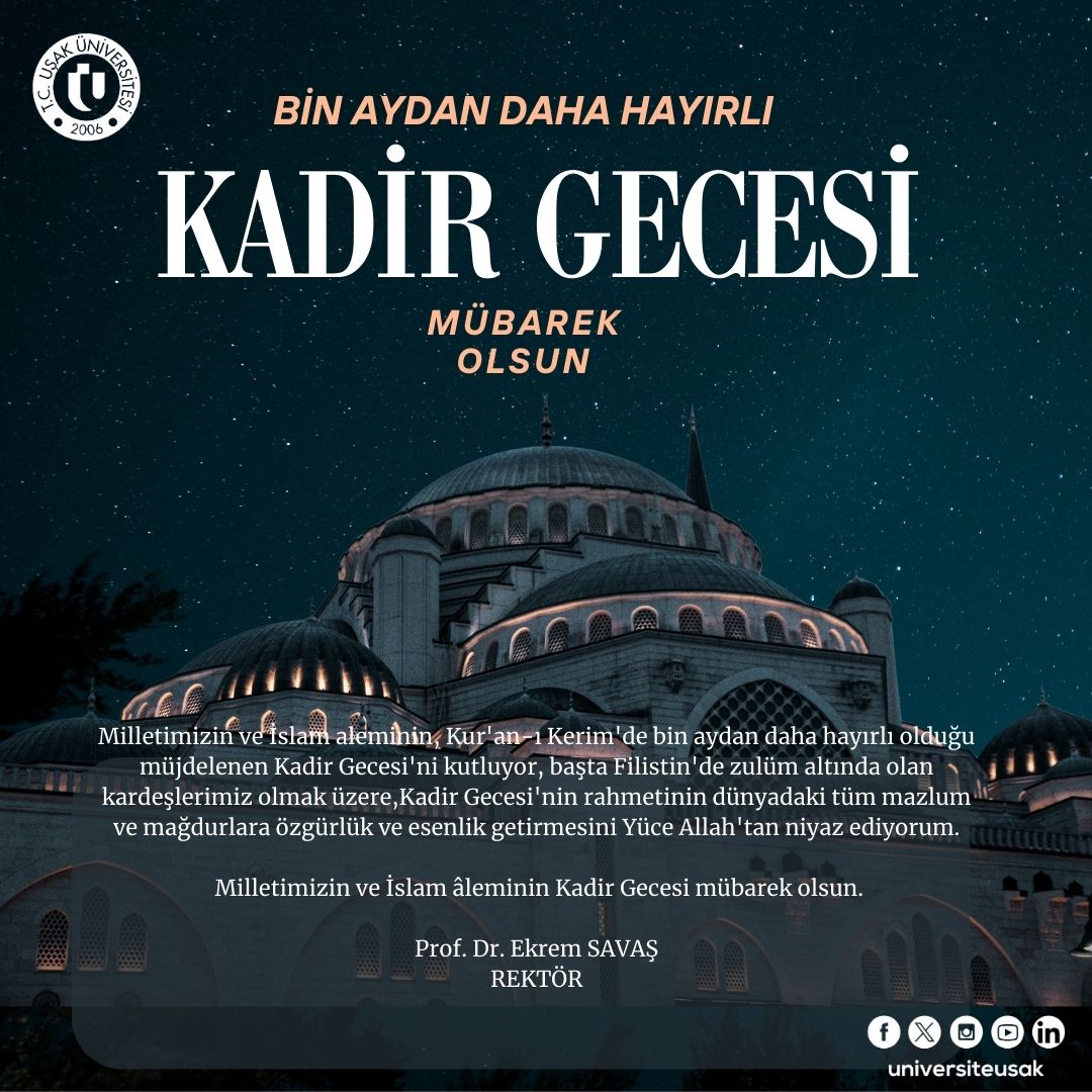 Ana Sayfa / Duyurular / Rektörümüz Prof. Dr. Ekrem SAVAŞ'ın Kadir Gecesi Mesajı