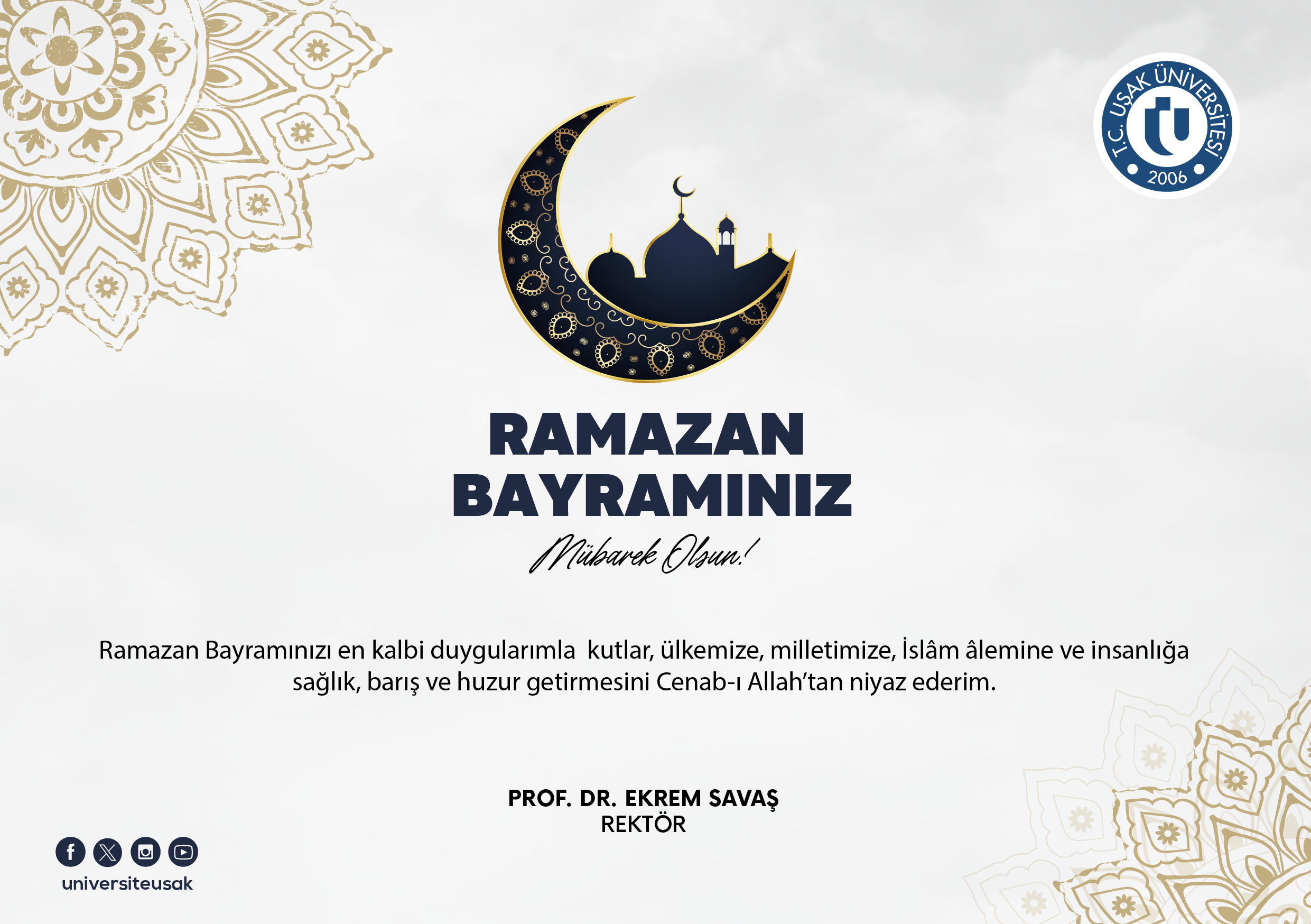 Ana Sayfa / Duyurular / Rektörümüz Prof. Dr. Ekrem SAVAŞ’ın Ramazan Bayramı Mesajı