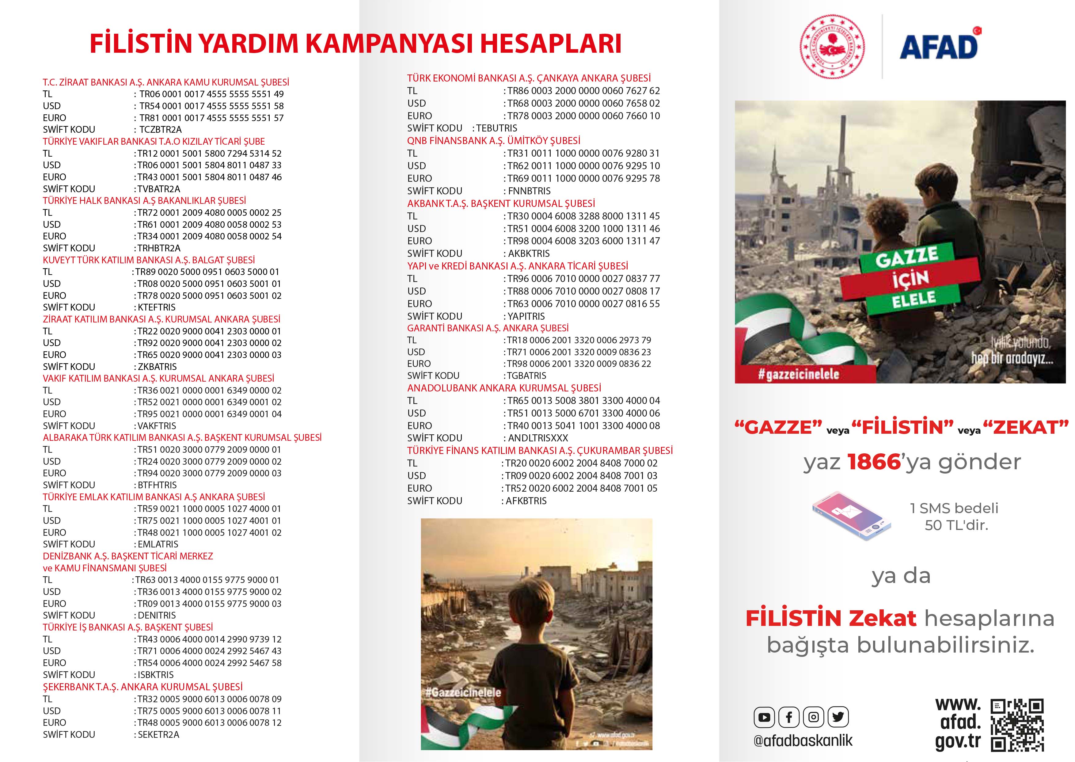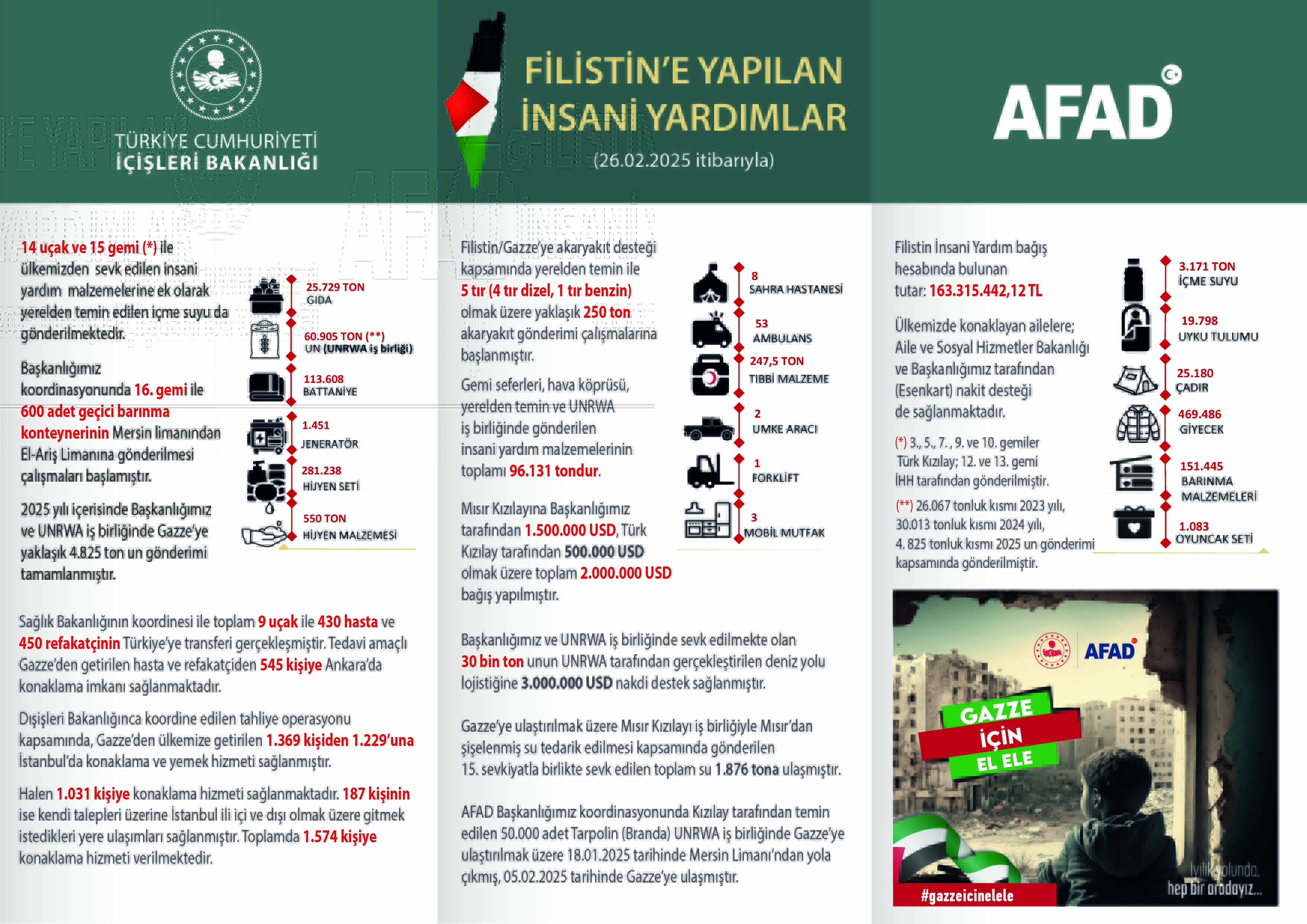 İnsani dram yaşayan Filistin halkına destek sağlanmasına yönelik İçişleri Bakanlığı Afet ve Acil Durum Yönetimi Başkanlığı tarafından kampanya başlatılmıştır.
