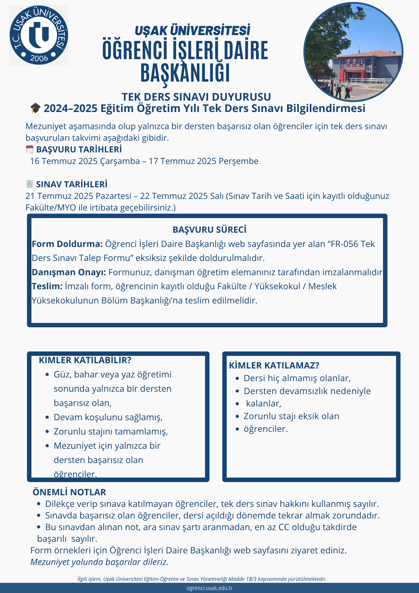 Ana Sayfa / Duyurular / Tek Ders Sınavı Duyurusu