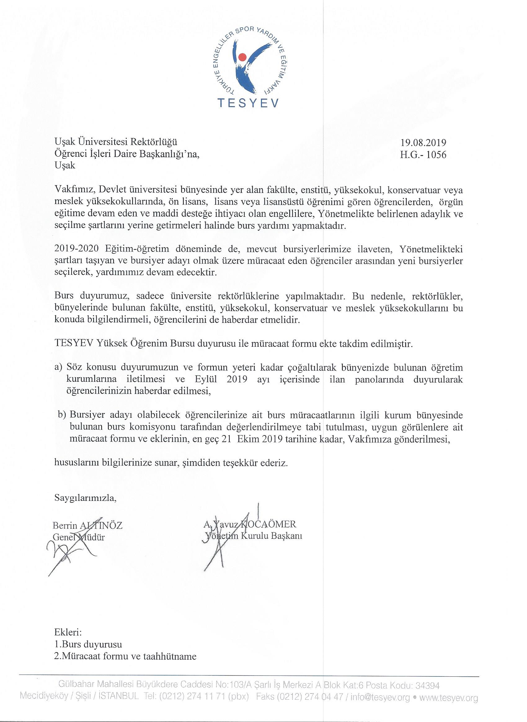 Yüksek Öğrenim Öğrencileri TESYEV Bursu Duyurusu için tıklayınız.