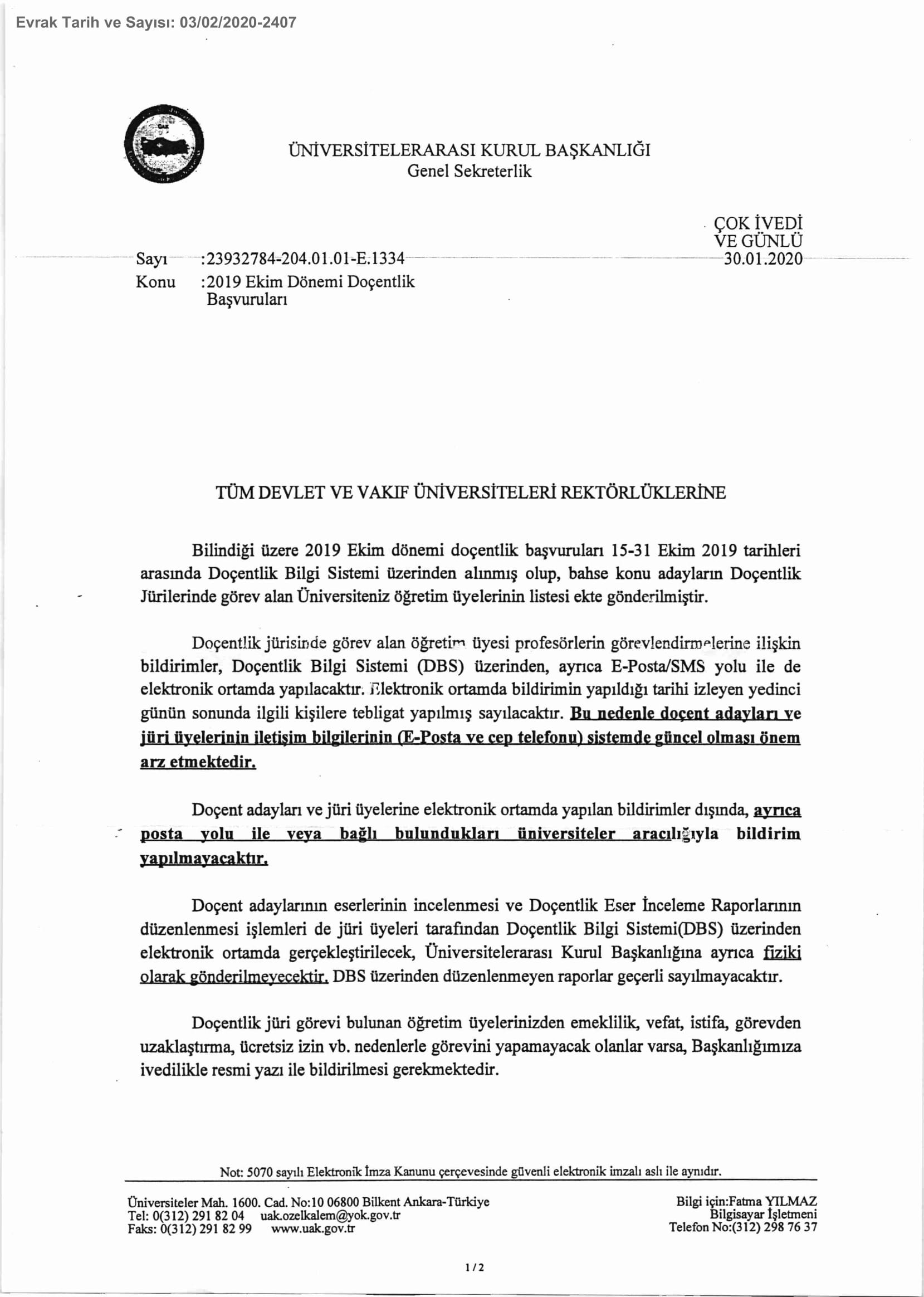Üniversitemizde Profesör Kadrosunda Görev Yapan Öğretim Üyelerinin Dikkatine