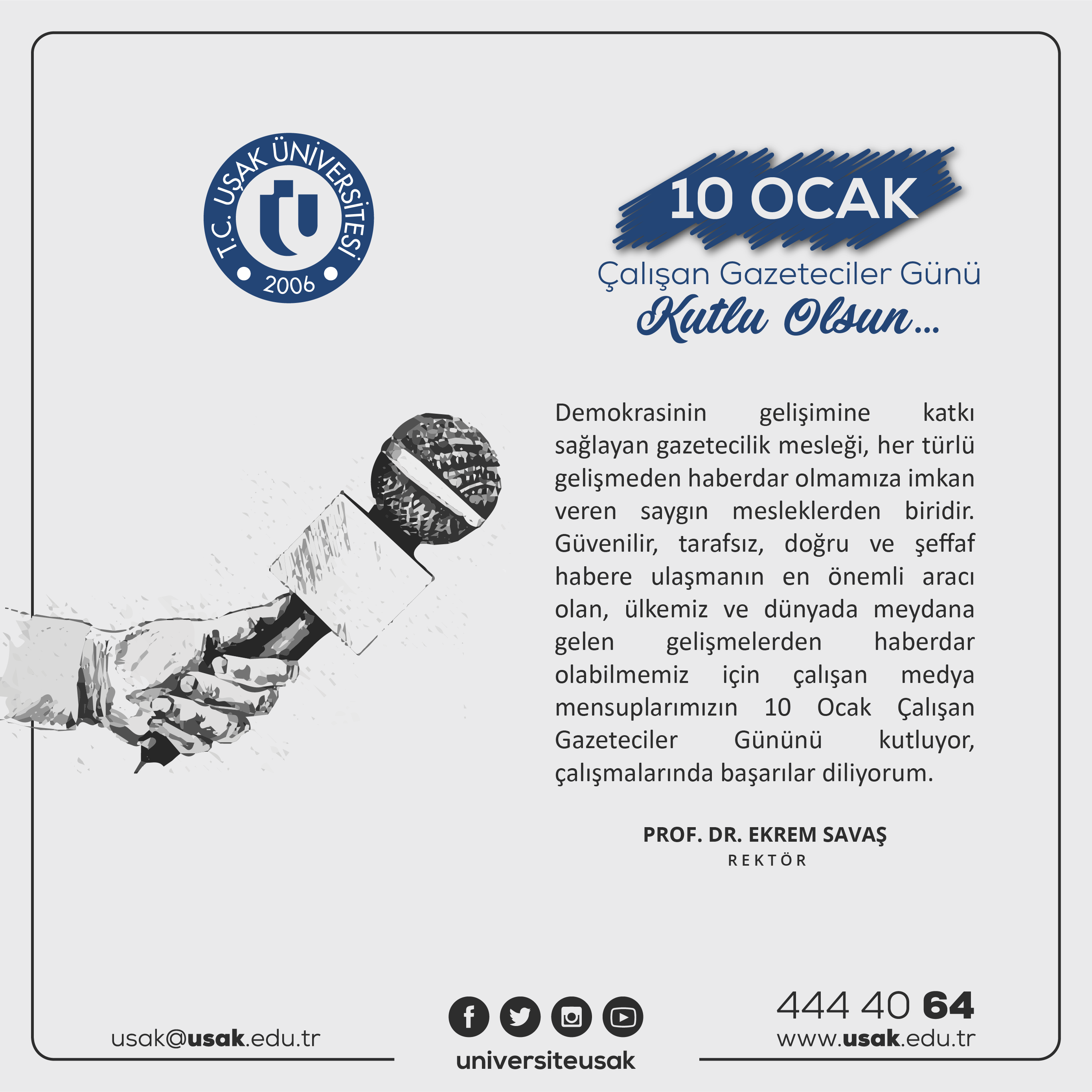 Güvenilir, tarafsız, doğru ve şeffaf habere ulaşmanın en önemli aracı olan, ülkemiz ve dünyada meydana gelen gelişmelerden haberdar olabilmemiz için çalışan medya mensuplarımızın 10 Ocak Çalışan Gazeteciler Gününü kutluyor, çalışmalarında başarılar diliyorum.