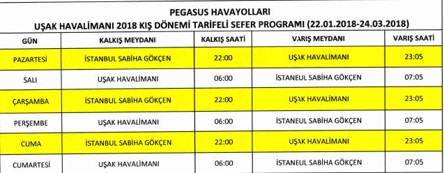 Ana Sayfa / Duyurular / Uşak Havalimanı Tarifeli Sefer Programı