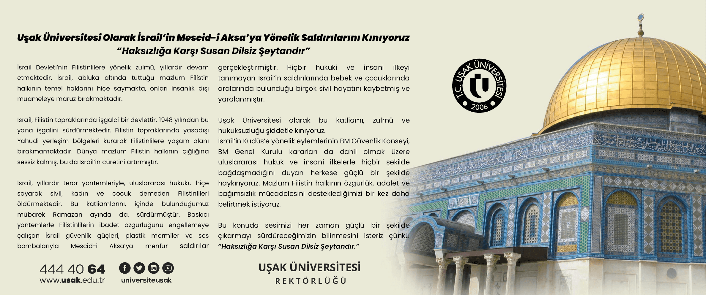 Uşak Üniversitesi olarak bu katliamı, zulmü ve hukuksuzluğu şiddetle kınıyoruz.