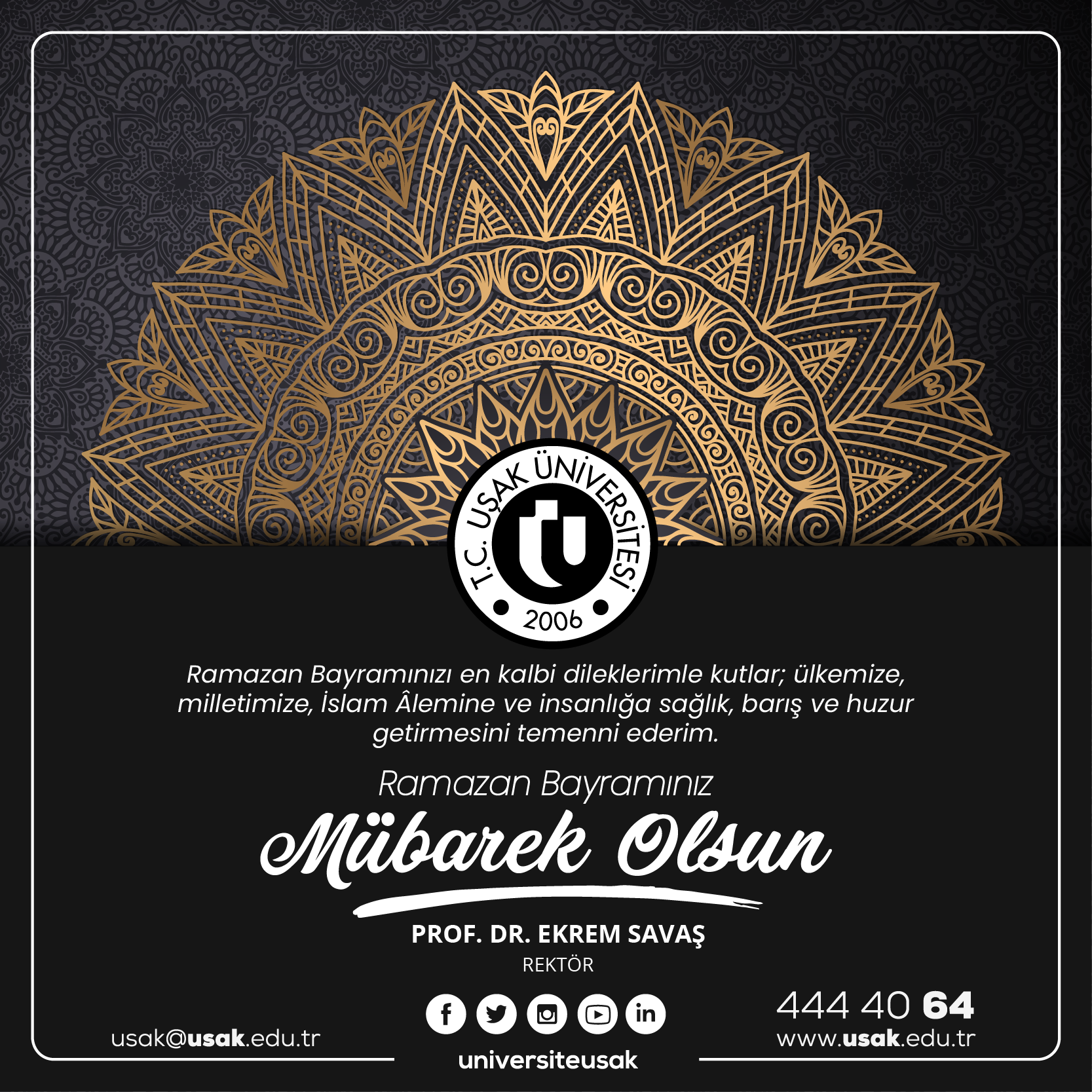 Bu duygu ve düşüncelerle Ramazan Bayramınızı gönülden kutluyor, bu mübarek günlerin Milletimize, İslam alemine ve tüm insanlığa huzur, mutluluk ve bereket getirmesini Cenab-ı Hak'tan niyaz ediyorum.