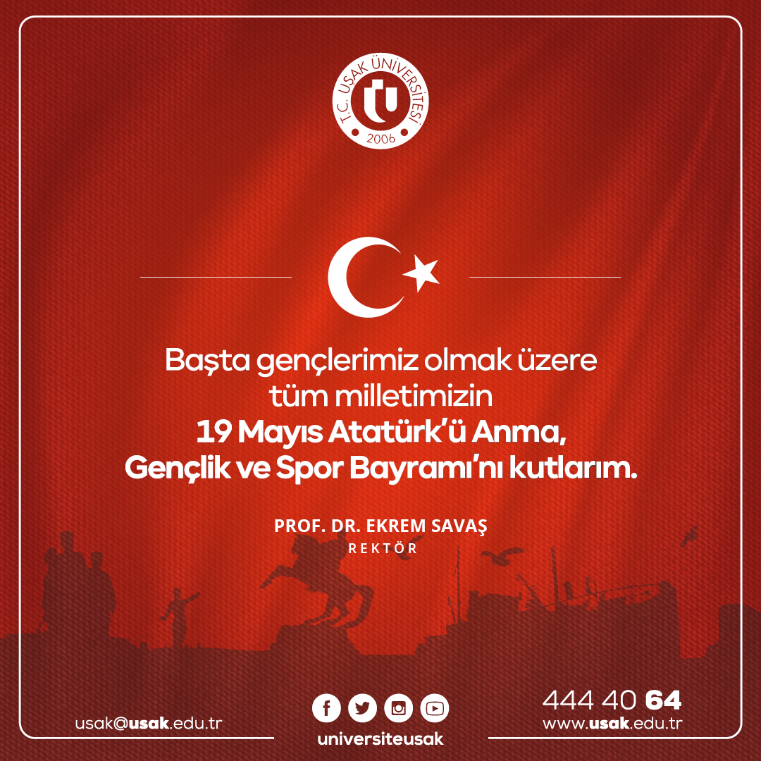 Bu duygu ve düşüncelerle başta gençlerimiz olmak üzere tüm milletimizin 19 Mayıs Atatürk’ü Anma, Gençlik ve Spor Bayramı’nı kutluyor, Gazi Mustafa Kemal Atatürk ve tüm silah arkadaşlarını bir kez daha saygıyla ve rahmetle anıyorum.