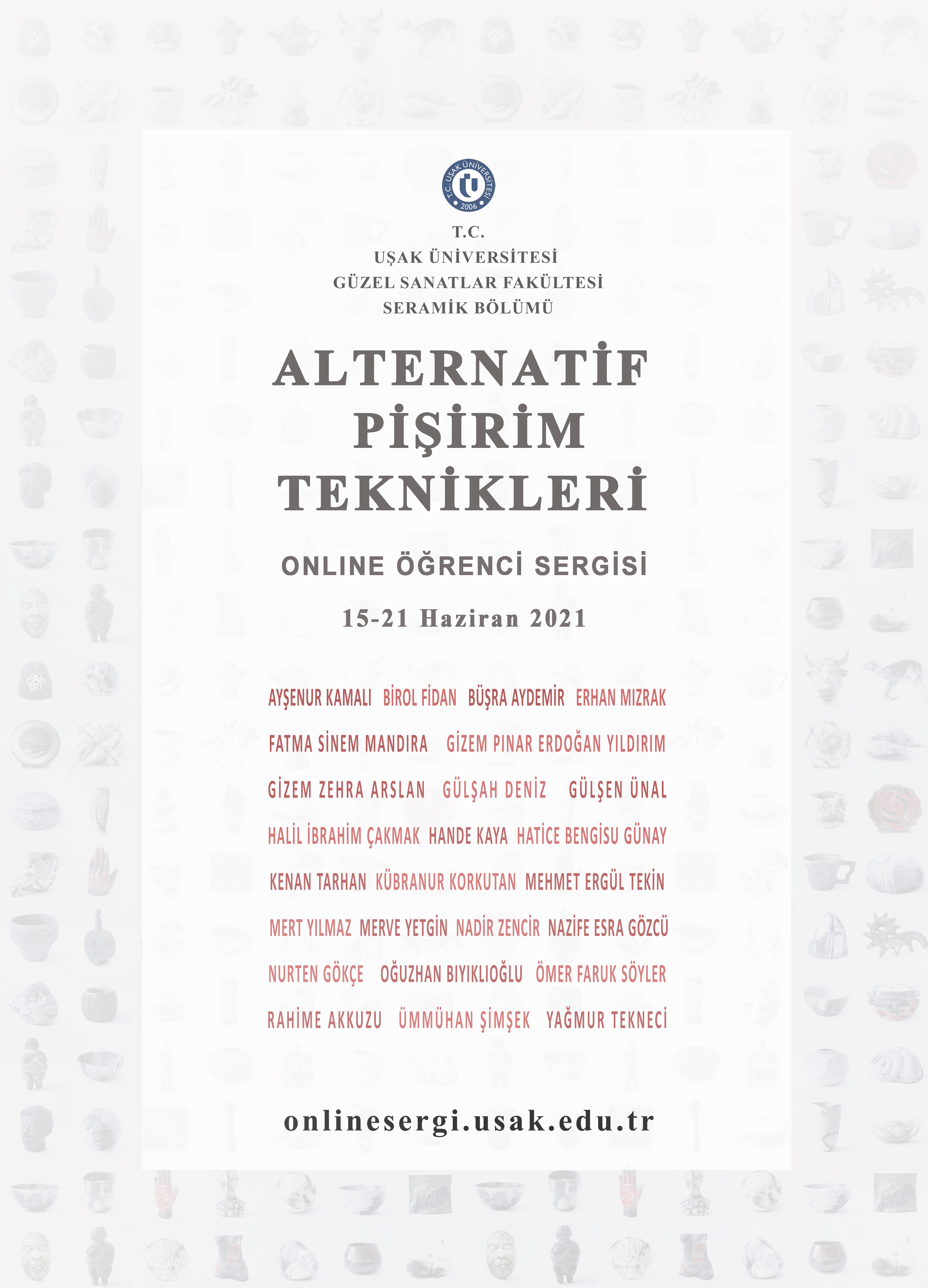 25 öğrencinin katılımıyla gerçekleşen “Alternatif Pişirim Teknikleri Online Öğrenci Sergisi” 15 - 21 Haziran 2021 tarihleri arasında sanatseverlerle buluşacaktır. Sergi https://onlinesergi.usak.edu.tr/ linkinden ziyaret edilebilir.