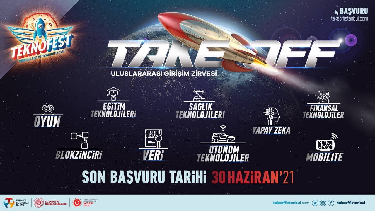 T.C. Teknoloji ve Sanayi Bakanlığı, T.C. Cumhurbaşkanlığı Yatırım Ofisi ve Türkiye Teknoloji Takımı Vakfı işbirliği ile bu sene üçüncüsü düzenlenecek Take Off, yerli ve yabancı girişim ekosisteminin tüm paydaşlarını İstanbul’da buluşturacak.