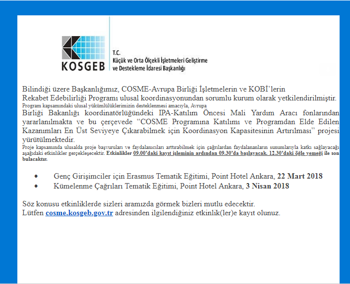 Ana Sayfa / Duyurular / COSME Programı AB Projesi Tematik Etkinlikler