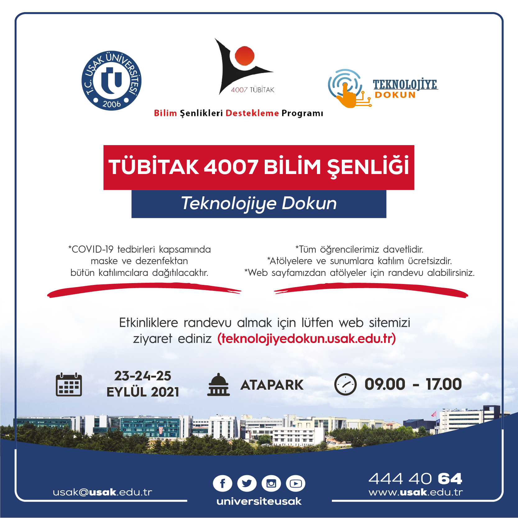 Etkinliğe tüm öğrencilerimiz davetlidir. Atölyelere ve sunumlara katılım ücretsizdir. Randevu almak için https://teknolojiyedokun.usak.edu.tr