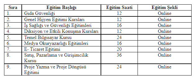 11- Eğitimler için herhangi bir mezuniyet şartı yoktur.