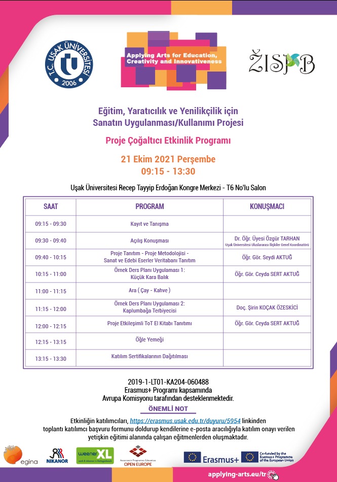 Ana Sayfa / Duyurular / Eğitim, Yaratıcılık ve Yenilikçilik için Sanatın Uygulanması/Kullanımı Projesi