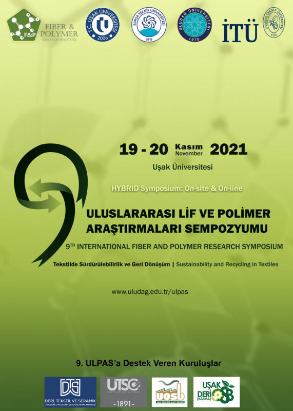 Uluslararası Lif ve Polimer Araştırmaları Sempozyumlarının (ULPAS) dokuzuncusu; 9. ULPAS, 19-20 Kasım 2021 tarihlerinde Uşak Üniversitesi’nde “Tekstil Geri Dönüşümü ve Sürdürülebilirlik” konusu odağında yapılacaktır. Şimdiye kadar olduğu gibi, 9. ULPAS’ın da amacı, ülkemizde sizler ve sizler gibi değerli akademisyen, araştırmacı ve ilgili sektör çalışanlarının lif ve polimer alanındaki bilimsel, teknolojik, inovatif çalışmaların sonuçlarının uluslararası boyutta paylaşılmasına zemin oluşturmaktır. Bu amaçla, yenilikçi polimer ve liflerin eldesinden karakterizasyona, doğal ekstrakt maddeler ile tıbbi, kozmetik ve gıda alanında kullanılan nanoliflere, yara örtücü polimerik yüzeylerden işlevsel yapılara, güneş ışığından elektrik enerjisi üreten polimer ve lifli yapılardan akustik kontrol özelliklerine sahip malzemelere kadar pek çok ve farklı alanlarda yapılan araştırma çalışmalarınızı yansıtan tebliğleriniz sayesinde oluşacak bir beyin fırtınası, bilgi paylaşımı, bilgi gelişimi ortamının oluşmasına katkılarınızı bekleriz.