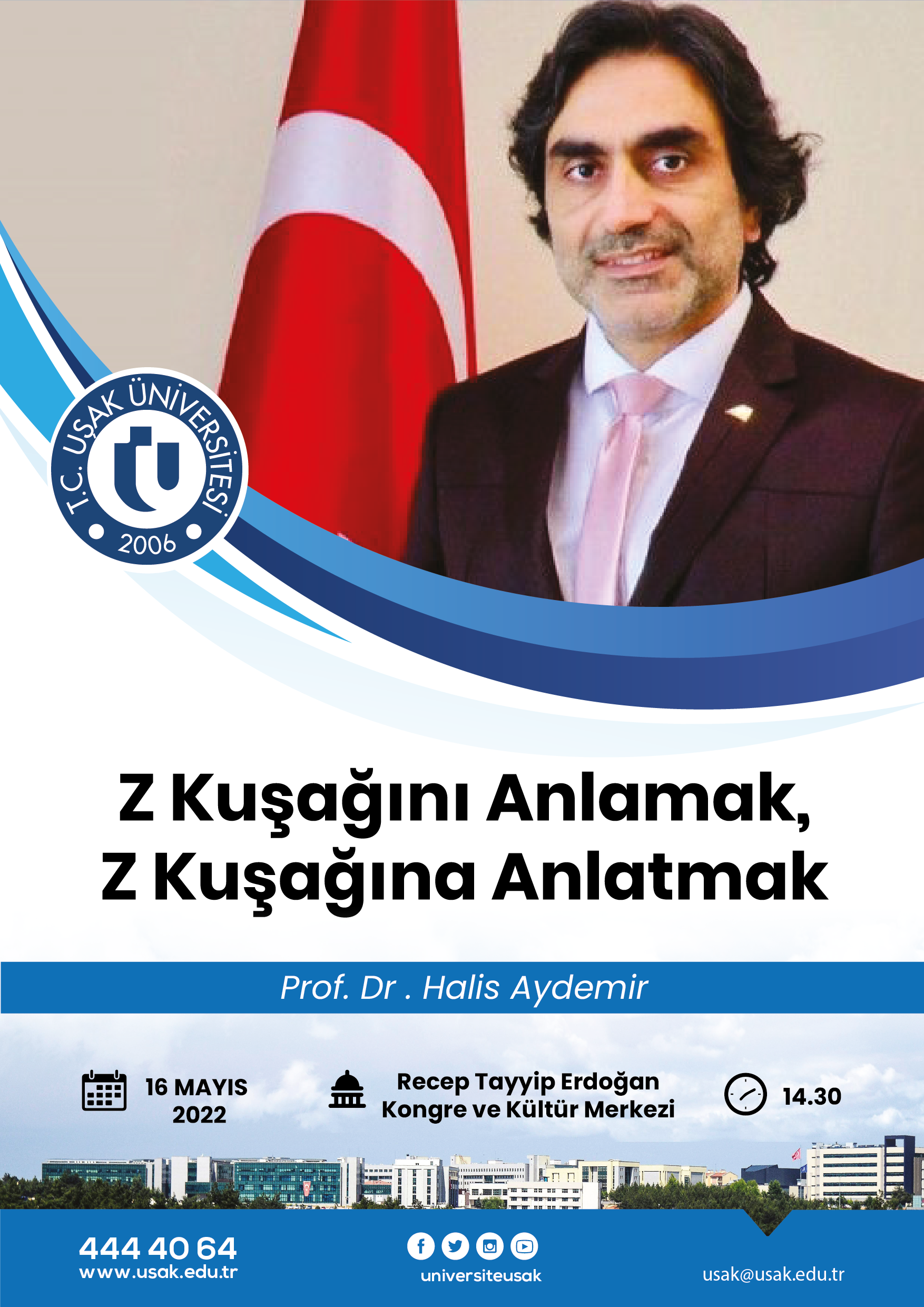 Üniversitemiz tarafından düzenlenen ve Diyanet İşleri Başkanlığı Din İşleri Yüksek Kurulu Üyesi Prof. Dr. Halis AYDEMİR'in konuşmacı olarak yer aldığı "Z Kuşağını Anlamak, Z Kuşağına Anlatmak" adlı konferans 16 Mayıs 2022 Pazartesi günü saat 14.30'da Recep Tayyip Erdoğan Kongre ve Kültür Merkezi Büyük Salonda gerçekleşecektir.