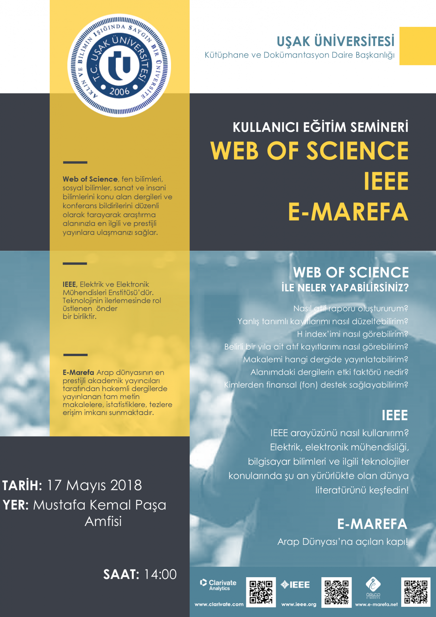 Ana Sayfa / Duyurular / Web of Science Kullanıcı Eğitim Semineri