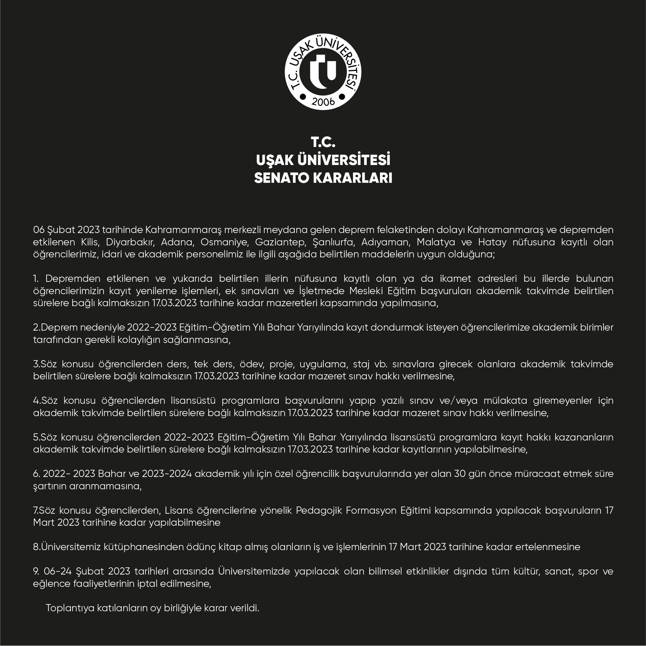 Ana Sayfa / Duyurular / Üniversitemizce Deprem Nedeniyle Alınan Senato Kararları