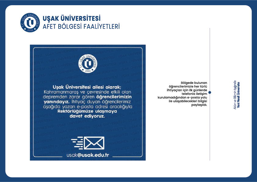 Ana Sayfa / Duyurular / Uşak Üniversitesi Afet Bölgesi Faaliyetleri