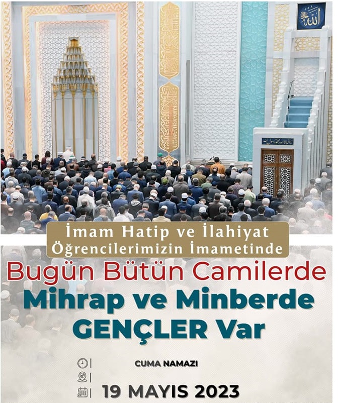 Diyanet İşleri Başkanlığı ‘Gençlik Haftası' münasebeti ile İslami İlimler Fakültesi ve İmam Hatip Lisesi öğrencilerinin mesleki yeterliliklerini artırmak ve sosyal gelişimlerine katkıda bulunmak amacıyla; 19 Mayıs 2023 tarihinde "Bugün Bütün Camilerde Cuma Namazı Mihrap ve Minberde "GENÇLER Var" temalı programı tüm illerde uygulanması istenmiş olup, bu kapsamda Uşak ilimizde Üniversitemiz İslami ilimler Fakültesi öğrencileri camilerde 19 Mayıs 2023 Cuma günü (yarın), Cuma Namazı kıldıracaklardır.