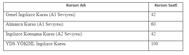 *Kurslar ücretlidir, kurs ücretleri daha sonra ilan edilecektir.