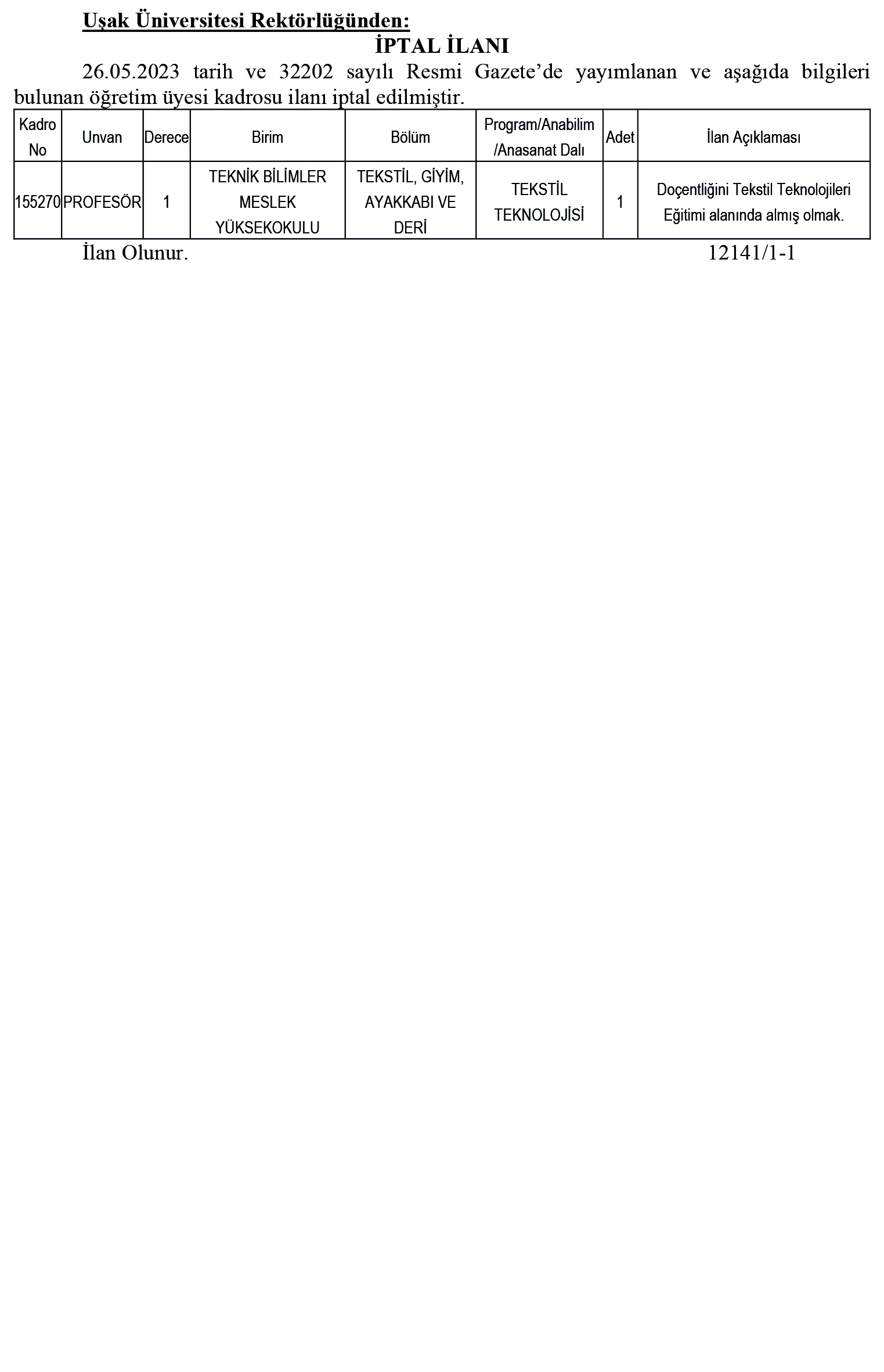 Ana Sayfa / Duyurular / Akademik İlan İptali