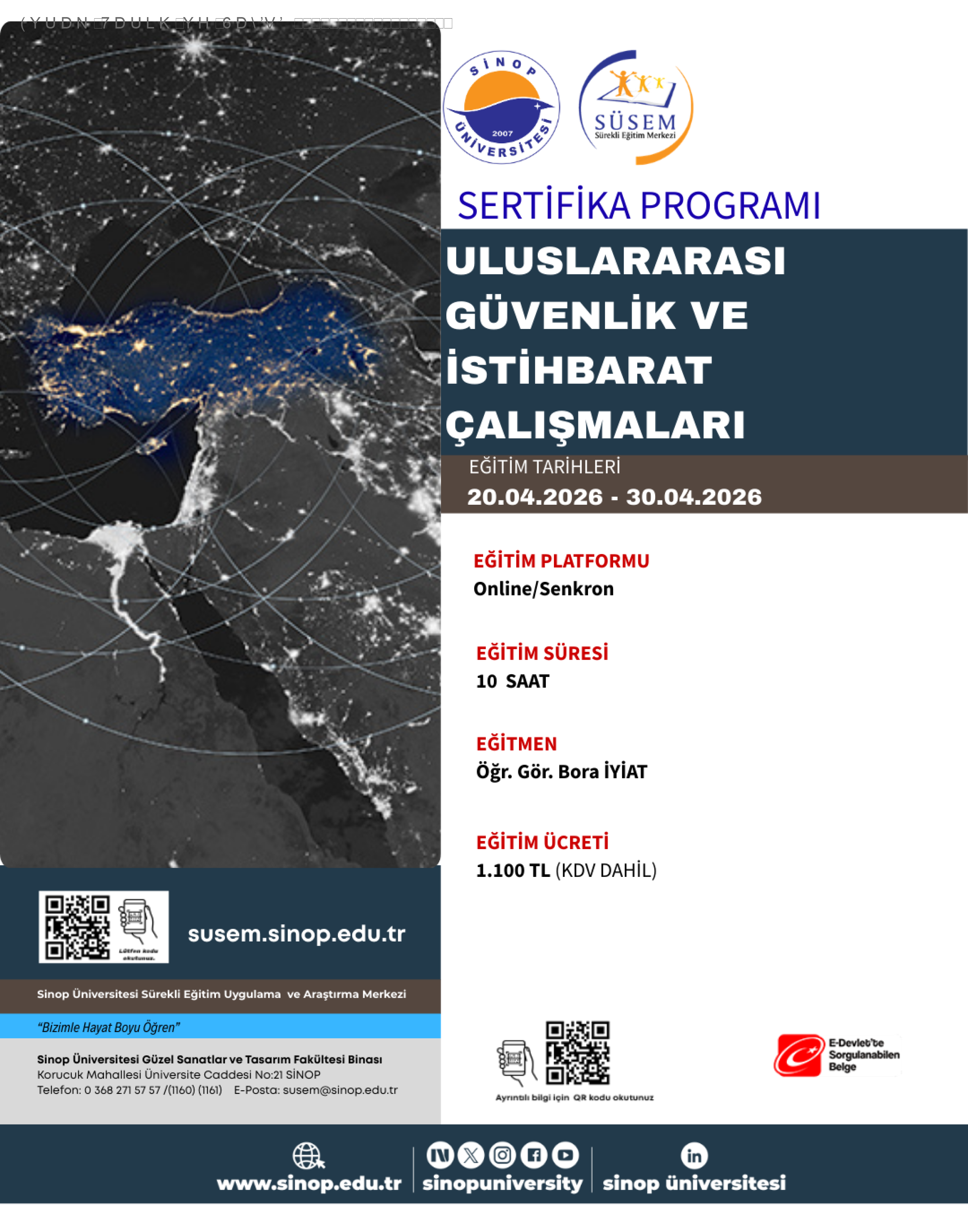 17 Mart 2026, Salı Uluslararası Güvenlik ve İstihbarat Çalışmaları Sertifika Programı