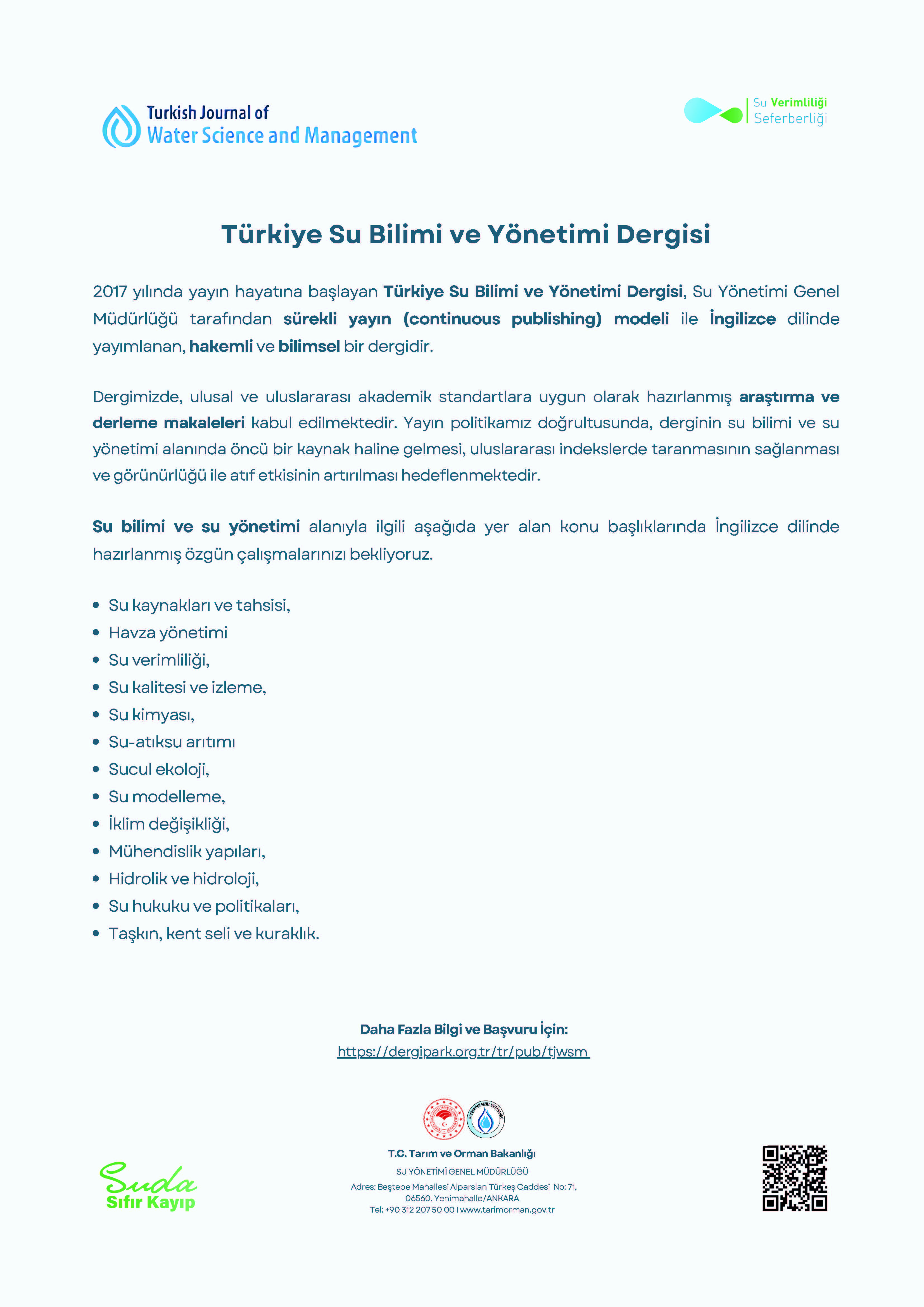7 Nisan 2026, Salı Türkiye Su Bilimi ve Yönetimi Dergisi (TJWSM) - Makale Çağrısı