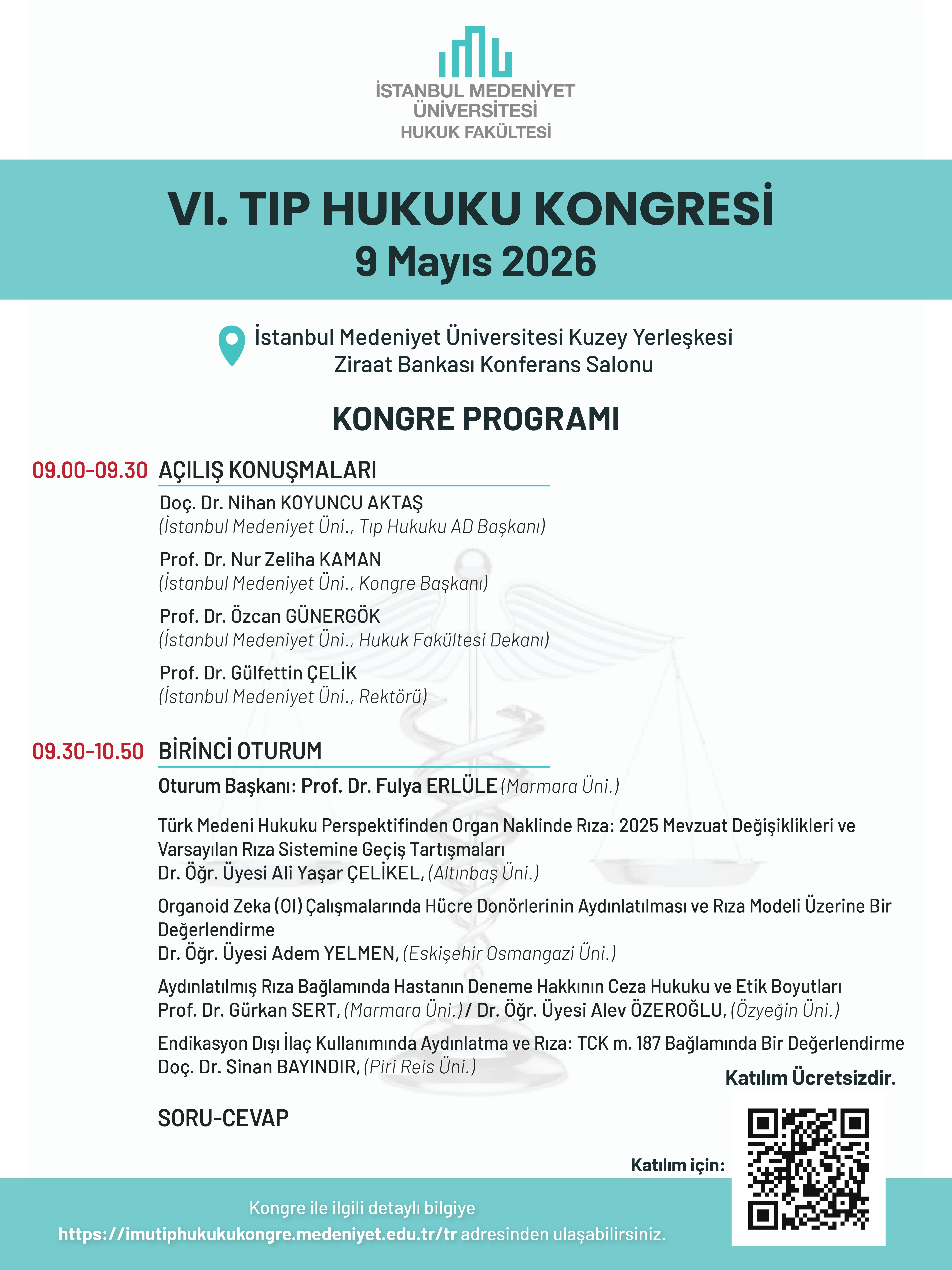 30 Nisan 2026, Perşembe VI. Tıp Hukuku Kongresi Duyurusu