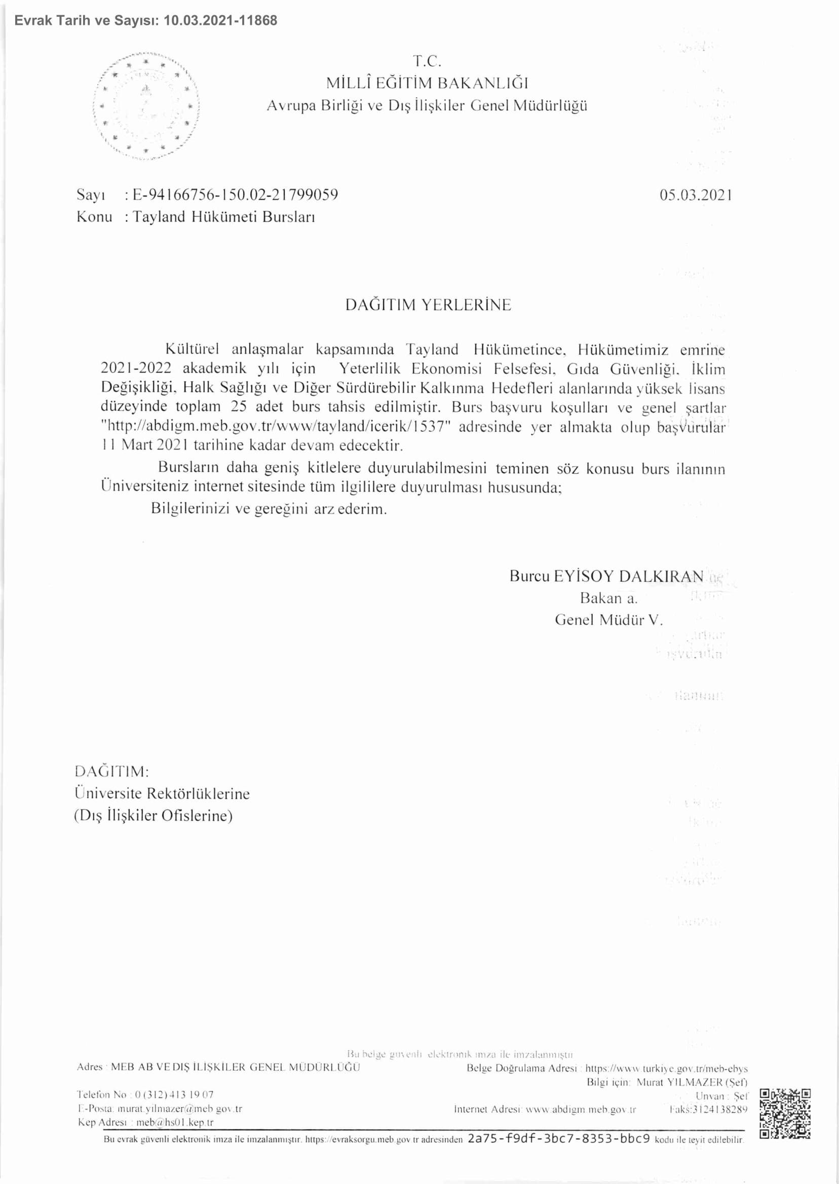 Ana Sayfa / Duyurular / Tayland Hükümeti Bursları