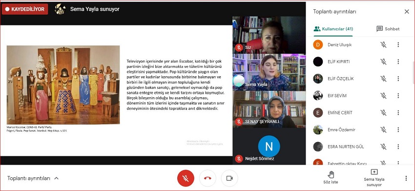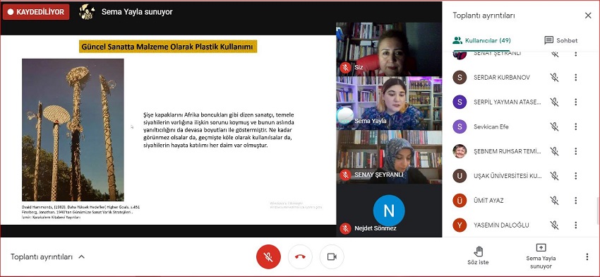 Güzel Sanatlar Fakültesi Resim Bölümü tarafından, “Sanat Eserinde Malzemenin Sınır Deneyimi ve Güncel Sanatta Plastik Kullanımı” konulu çevrimiçi konferans gerçekleştirildi. Moderatörlüğünü Öğr. Gör. Senay Şeyranlı’nın üstlendiği konferansa, konuşmacı olarak Sanatçı Sema Yayla Boza katıldı.