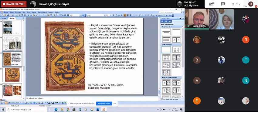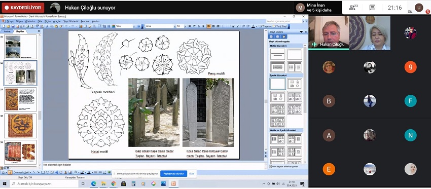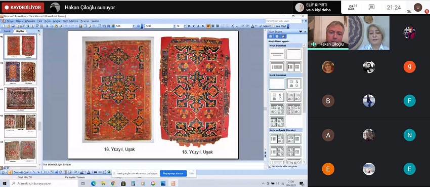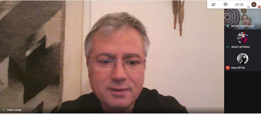 Moderatörlüğünü Dr. Öğr. Üyesi Salimeh Amanjani’nin yaptığı konferansa Marmara Üniversitesi Güzel Sanatlar Fakültesi Geleneksel Türk Sanatları Bölümü, Halı- Kilim, Eski Kumaş Desenleri Anasanat Dalı öğretim üyesi Doç. Dr. Hakan Çiloğlu konuşmacı olarak katıldı.