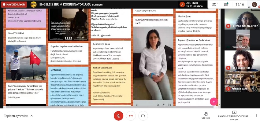 Uşak Üniversitesi Engelsiz Birim Koordinatörlüğü tarafından 10-16 Mayıs Engelliler Farkındalık Haftası dolayısıyla ‘‘İki Kere Farklılık: Engelli Bireyler Üstün Yetenekli Olabilir Mi?’’ adlı çevrimiçi etkinlik gerçekleştirildi.