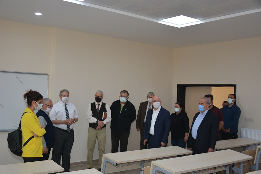 DTS Tasarım Merkezinin ardından Rektör Savaş ve Vakıf üyeleri, Uşak Üniversitesi Tıp Fakültesi derslik ve laboratuarlarını gezerek, Dekan Prof. Dr. Ümit Başar Semiz’den bilgi aldılar.