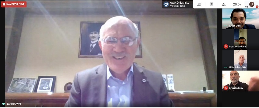 Uşak Üniversitesi Rektörü Prof. Dr. Ekrem Savaş ile Uşaklılar Eğitim ve Kültür Vakfı Başkanı Mimar B. Rahmi Ekiz’in konuşmacı olduğu "Uşak Üniversitesi'nde Pandemi Sürecinde İnovasyonlar" adlı online konferans gerçekleştirildi.