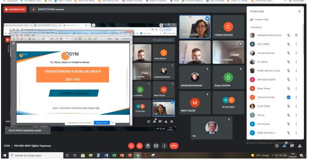 Sınav Güvenliği toplantısının ardından Yükseköğretim Kurumları Sınavı (YKS) için Uşak Üniversitesi ÖSYM İl Sınav Merkezi Koordinatörlüğü tarafından çevrimiçi “Görevli Eğitimi” gerçekleştirildi. Eğitimde Sınav Organizasyon Koordinatörü Prof. Dr. Sadiye Tutsak tarafından, Bina Sınav Sorumluları ve Bina Sınav Sorumlusu Yardımcılarına yönelik, 2021 YKS Sınavı ile ilgili sınav öncesi, sınav günü ve sonrasında alınacak tedbirler ve Kovid-19 nedeniyle alınacak önlemler ile ilgili bilgi verildi.