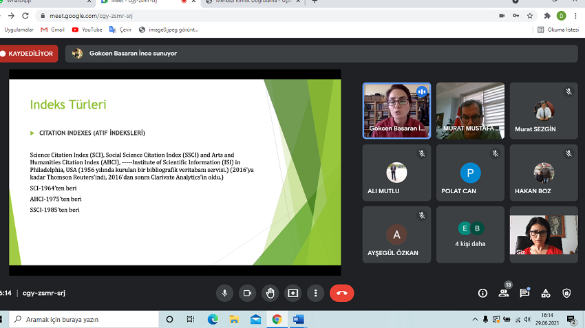Uşak Üniversitesi İletişim Fakültesi kalite çalışmaları kapsamında akademisyenlere yönelik online konferans düzenledi. Online gerçekleşen konferansta Ege Üniversitesi İletişim Fakültesi Gazetecilik Bölümü Öğretim Üyesi Doç. Dr. Gökçen Başaran İnce, alan indeksli dergilerde yayın süreci hakkında bilgi verdi.