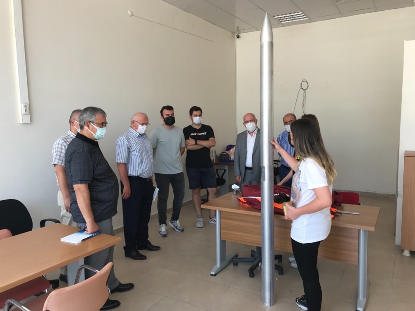 Sunumun ardından Savaş ve MÜSİAD yönetim kurulu üyeleri, Robot Topluluğu ile bir araya geldi. Topluluğun çalışmaları hakkında bilgi alan MÜSİAD üyeleri; 2021 TEKNOFEST’te roket yarışmasına katılan Alaca takımının roketini inceledi. Ülkemizin uzay yolculuğunda gençlerimizin projelerinin önem arz ettiğini dile getiren MÜSİAD Uşak Şube Başkanı Yıldırım, “Son yıllarda ülkemizde özellikle gençlerimiz tarafından yerli ve milli teknoloji çalışmaları yapılıyor. İnsansız Hava Araçları (İHA) üretiyoruz. Teknolojide dışa bağımlılığa son veren projeler yapılıyor. Gençlerimiz ülkemizin geleceği. Robot Topluluğunun çalışmaları takdire şayan. Bizler MÜSİAD olarak Robot Topluluğumuza çalışmalarında destek olacağız. TEKNOFEST’te başarılı bir sonuç alacaklarına inanıyoruz. Başta Rektör Savaş olmak üzere Robot Topluluğumuzu başarılı çalışmalarından dolayı tebrik ediyorum.” şeklinde konuştu.