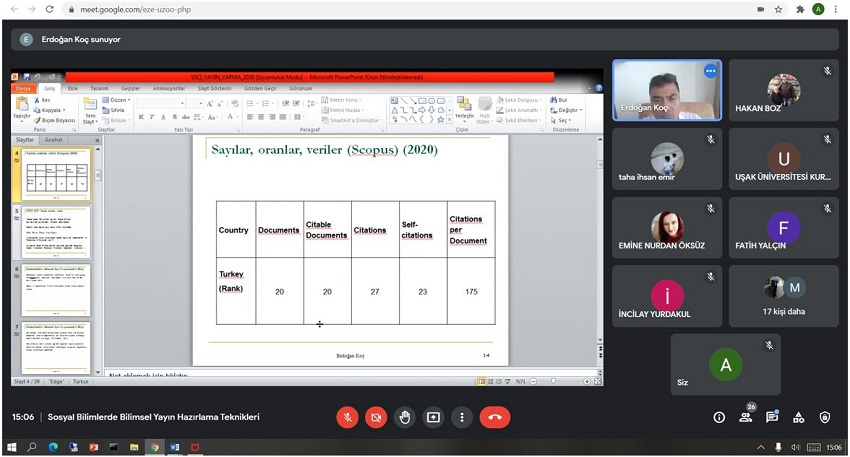 Uşak Üniversitesi Teknoloji Transfer Ofisi (UTTO) tarafından 05 Ağustos 2021 tarihinde, Bahçeşehir Üniversitesi İşletme Bölümü öğretim üyesi Prof. Dr. Erdoğan Koç'un konuşmacı olarak katıldığı "Sosyal Bilimlerde SSCI İndeksli Dergilerde Yayın Hazırlama Teknikleri" adlı eğitim gerçekleştirildi.