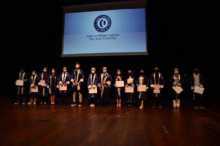 Açılış konuşmalarının ardından, dereceye giren 78 öğrenciye protokol üyeleri tarafından başarı belgeleri verildi. Uşak Üniversitesi 2020-2021 Akademik Yılı Mezuniyet Ödül Töreni, öğrencilerin kep atması ile sona erdi.