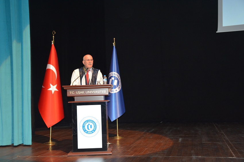 Rektör Prof. Dr. Ekrem Savaş törende gerçekleştirdiği konuşmasında, ilk emri “Oku” olan bir inancın mensupları olarak medeniyetimizin tarih boyunca bilgiye ve eğitime büyük bir önem verdiğini belirterek ‘‘Medeniyetimiz, dünya çapında ilim merkezleri kurmuş, ilme yön veren mütefekkirler yetiştirmiştir. Uşak Üniversitesi olarak, sahip olduğumuz bu kültürel hazineden feyiz alarak, milli ve manevi duygularla dolu, evrensel değerlerle barışık, vatanına ve milletine faydalı gençler yetiştiriyoruz. Bu yıl, 6 binin üzerindeki yavrumuzu mezun etmenin hep birlikte haklı gururunu yaşıyoruz.’’ dedi.