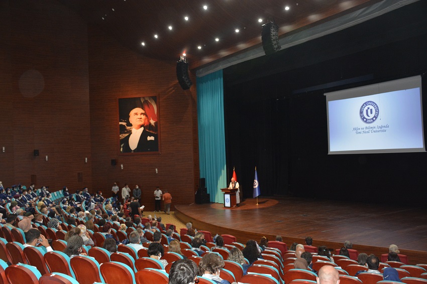 ‘‘Biliyorum ki üniversiteye başladığınız günü daha dün gibi hatırlıyorsunuzdur. Dünyayı ve ülkemizi saran pandemi şartları nedeniyle sizler de büyük zorluklar çektiniz. Bugün, acısıyla tatlısıyla buradaki eğitiminizin sonuna geldiniz. Fakat bugün bir son olduğu kadar bir başlangıçtır da. Burada geçen günlerinizi iyi değerlendirdiğinize, geleceğe iyi hazırlandığınıza inancımız tamdır. Gelecek yıllarda ülkemizin sosyal, siyasi ve iktisadi yaşamında önemli görevler üstlenecek olan siz değerli mezunlarımızın yalnızca burada kazandıkları meziyetlerle yetinmeyip, öğrenmenin hayat boyu süren bir olgu olduğu gerçeğini göz önünde bulundurarak, hayatınız boyunca yeniliklere ve öğrenmeye açık olmanız gerektiğini ifade etmek isterim. Sizler, mezun olduktan sonra, yaşamınız boyunca da üniversitemizin temsilcileri olmaya devam edeceksiniz. En büyük dileğim, sizlerin yeniliklere açık, sürekli öğrenmeye istekli, araştıran ve sorgulayan, ülkemizin sorunlarına karşı duyarlı, sorun çözme yeteneği olan, demokrasiye, hukuka ve insan haklarına saygılı, etik değerlere bağlı, erdemli, sağduyulu kişiler olarak vatanımıza, milletimize ve insanlığa hizmet etmenizdir. Öğrenciyken kurduğumuz bu gönül bağının daha da güçleneceğinden şüpheniz olmasın. Mezun olmanız ayrılmanız anlamına gelmez. Bu üniversitenin kapısı sizlere her zaman sadık bir dost sıcaklığıyla açık duracaktır. Sizler de gittiğiniz yerlerde Uşak Üniversitesi mezunu olma bilinciyle hareket edin ve mezunlar olarak büyük bir aile olduğumuzu tüm dünyaya gösterin.’’