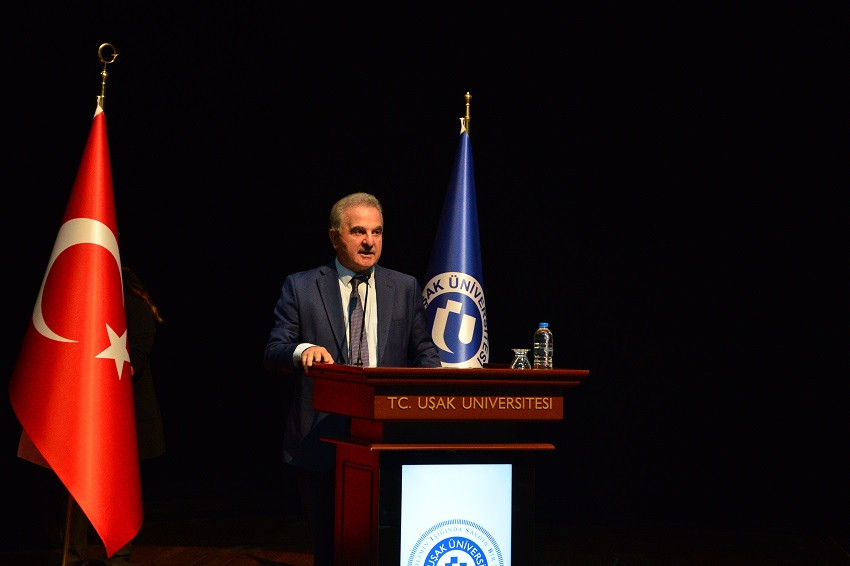 Programın açılış konuşmasını yapan Rektör Prof. Dr. Ekrem Savaş, Uşak Üniversitesinin 4 yıllık gelişimi ile ilgili bir sunum yaparak, kalite yönetim sistemi çalışmaları, hak kazanılan ISO belgeleri ve akreditasyon belgeleri, Bölgesel Kalkınma ve Deri Tekstil ve Seramik (DTS) Tasarım Merkezi faaliyetleri, seçmeli ortak dersler havuzu, Uşak OSB Teknopark, 7+1 ve 3+1 uygulamaları, Erasmus ve Mevlana Değişim programlarındaki artış, engelsiz üniversite başarıları, Teknoloji ve Transfer Ofisi (UTTO) çalışmaları, Bilimsel Analiz ve Teknolojik Uygulama Merkezinin (UBATAM) faaliyetleri, akademik ve idari ödül yönergeleri, danışma kurulları, ilk defa kurulan eğitim komisyonu çalışmaları, ulusal ve uluslararası proje sayılarındaki artış, uzaktan eğitim süreci ve akreditasyon çalışmaları, hakkında bilgi verdi. Prof. Dr. Savaş, göreve geldikleri ilk andan itibaren temel gayelerinin, aklın ve bilimin ışığında yeni nesil bir üniversite olan Uşak Üniversitesini, ülkemizin ve dünyanın, niteliksel olarak en önemli markalarından biri haline getirmek olduğunu belirterek “Gerçekleştirdiğimiz çalışmalarla “Kalite Öncelikli Olma” hedefleri doğrultusunda önemli başarılara imza atmaya devam ediyoruz. Eğitimde kalitesi tescillenmiş; üniversite-sanayi işbirliğini güçlendirmiş, bölgesiyle bütünleşmiş güçlü bir bilim yuvası olarak birçok başarıya imza atmaya devam edeceğiz. Bilime katkı sağlayan akademisyenlerimiz ve üniversitemizi daha ileri taşıma gayretiyle çalışan idari personelimizle sadece ülkemizin değil aynı zamanda dünyanın en saygın üniversitelerinden biri olma yolunda emin adımlarla ilerliyoruz. Özverili çalışmalarıyla üniversitemize ISO Yönetim Sistemleri Belgelerini kazandıran başta Kalite Koordinatörlüğümüz olmak üzere, Bilgi İşlem Daire Başkanlığımız ve Yapı İşleri Daire Başkanlığımıza, akademisyenlerimize ve idari personelimize teşekkür ediyorum.”şeklinde konuştu.