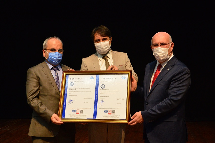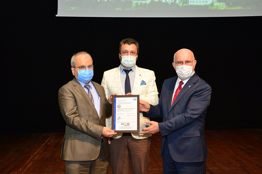 Açılış konuşmalarının ardından BBS Eğitim ve Gözetim Hizmetleri Genel Müdürü Yusuf Yılmaz, ISO Yönetim Sistemleri Belgeleri olan; TS EN ISO 9001:2015 Kalite Yönetim Sistemi Belgesini, TS EN ISO 14001:2015 Çevre Yönetim Sistemi Belgesini ve TS ISO/IEC 27001/2013 Bilgi Güvenliği Yönetim Sistemi Belgesini, Rektör Prof. Dr. Ekrem Savaş’a takdim etti.
