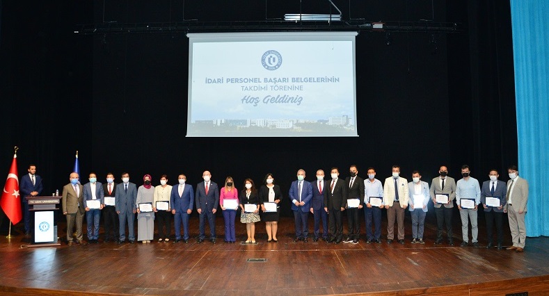 Akademik Birim Öz Değerlendirme belgelerinin verilmesinin ardından bu sene ilki yapılan “İdari Personel Başarı Değerlendirmesinde” başarılı olan 14 idari personellerimize başarı belgeleri verildi.